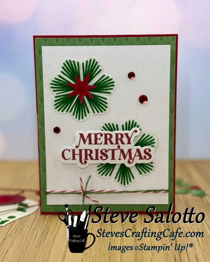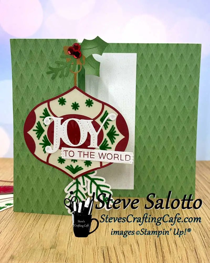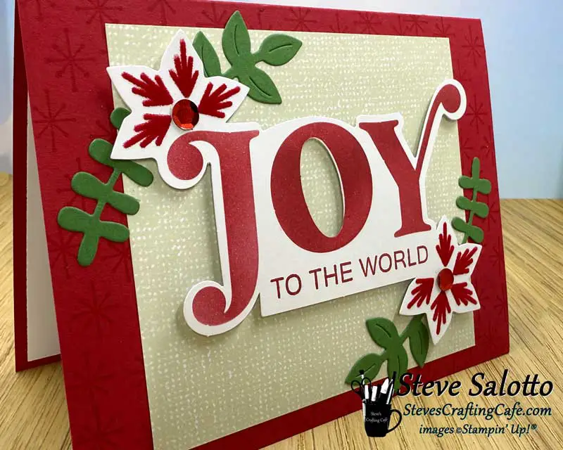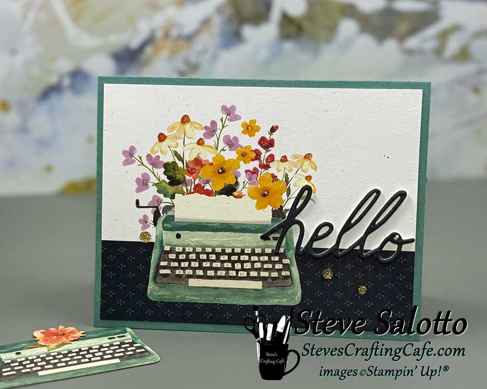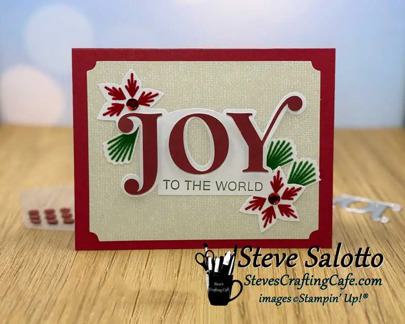 For this one, I added the "hello" sentiment from the add on "Circle of Season" dies. I die cut it with adhesive foam on the back so it has some awesome dimension!