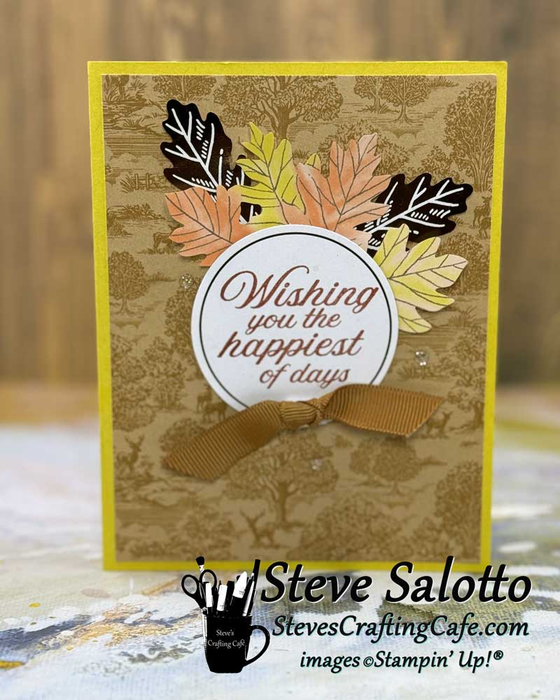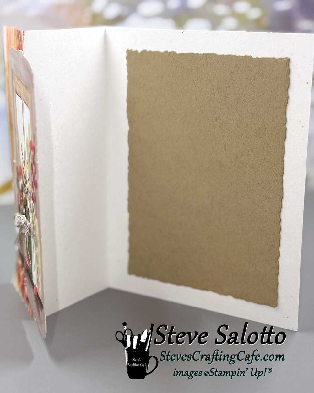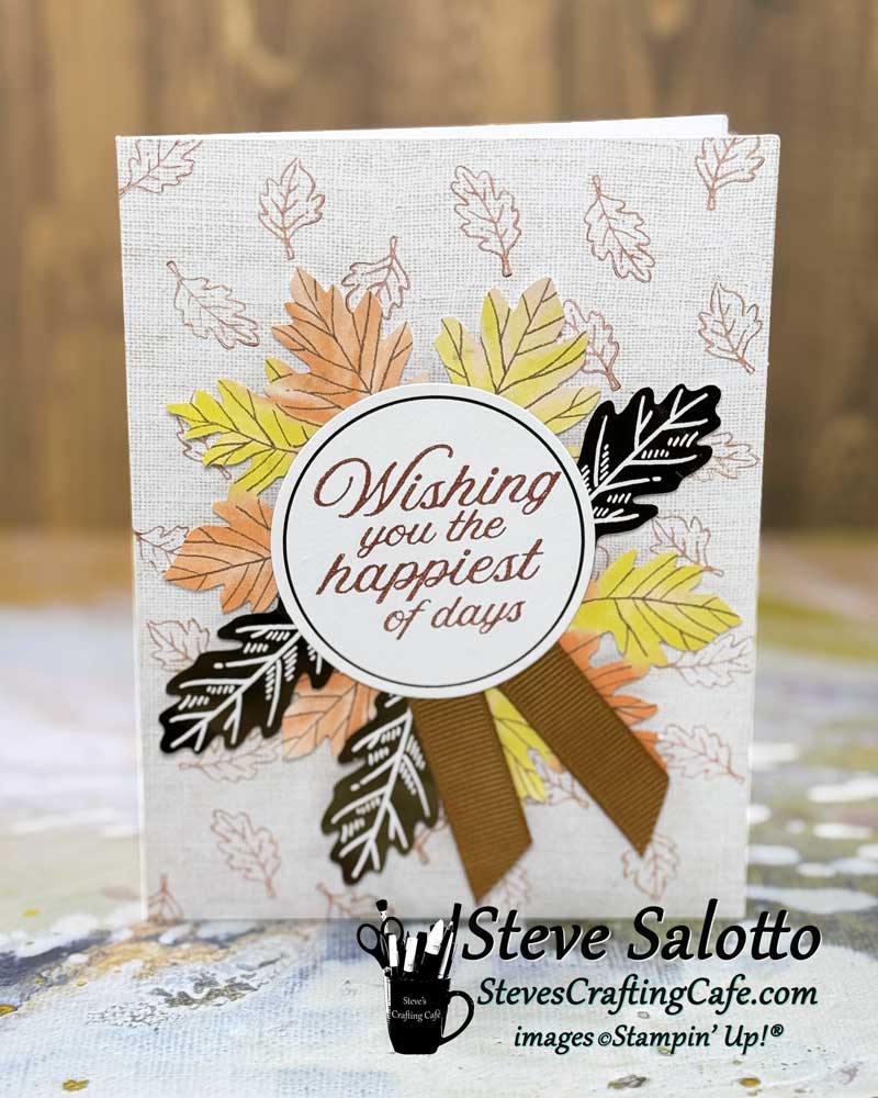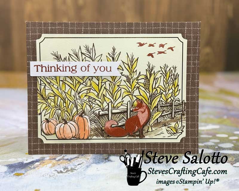 I die cut a panel using the "Perennial Postage" dies, stamped it with leaves, and added a die cut acorn from the add on.