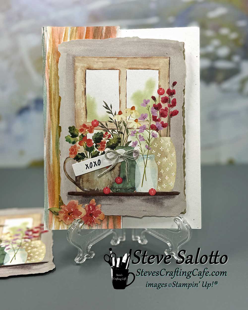 Another "step up" from one of the kit cards. I matted this on Berry Burst then used a Peach Pie card base. I cut the flowers and used only a portion of them.