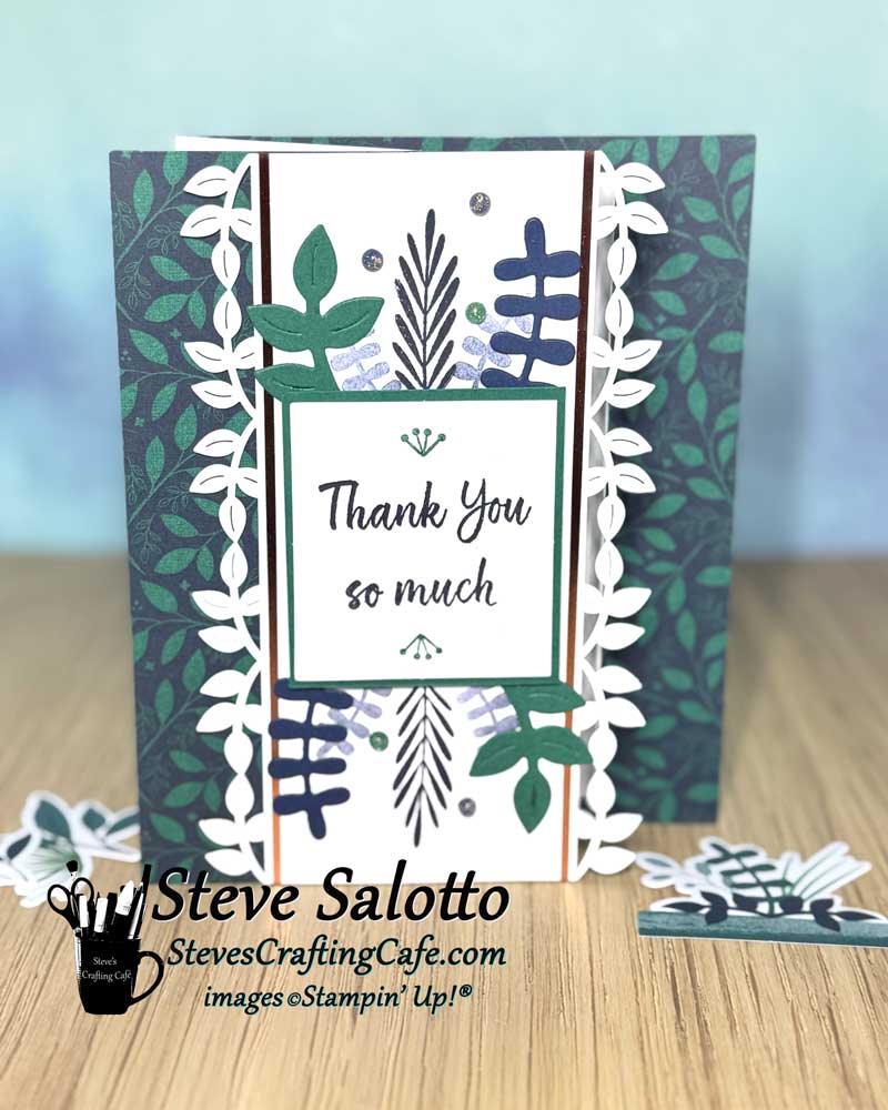 I made a z-fold card for my first alternate here. I love the white vines as a border. And I used the leaves from the "Abundant Joy" dies add-on.